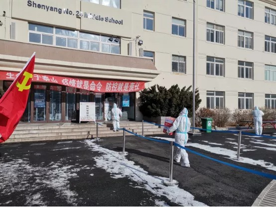 向沈陽(yáng)市第二十四中學(xué)全民檢測(cè)點(diǎn)發(fā)放慰問(wèn)物資