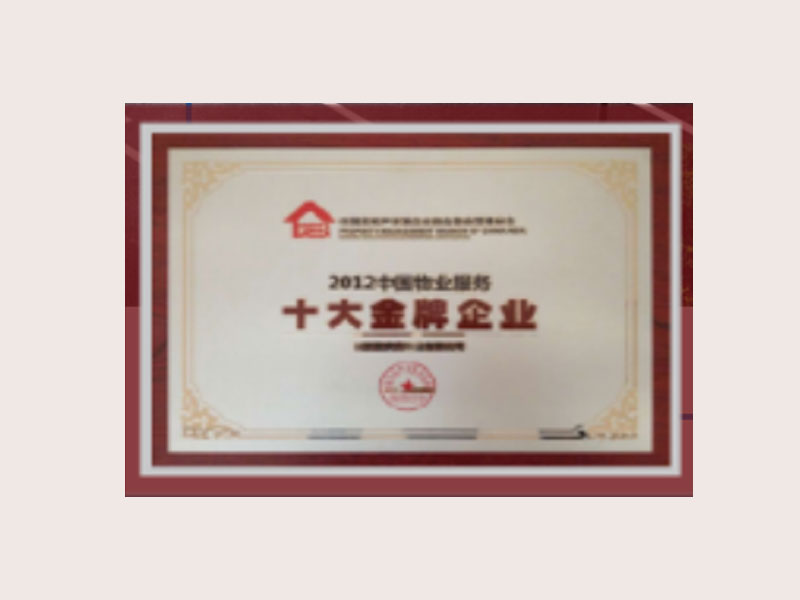 2012年中國物業(yè)服務十大金牌企業(yè)