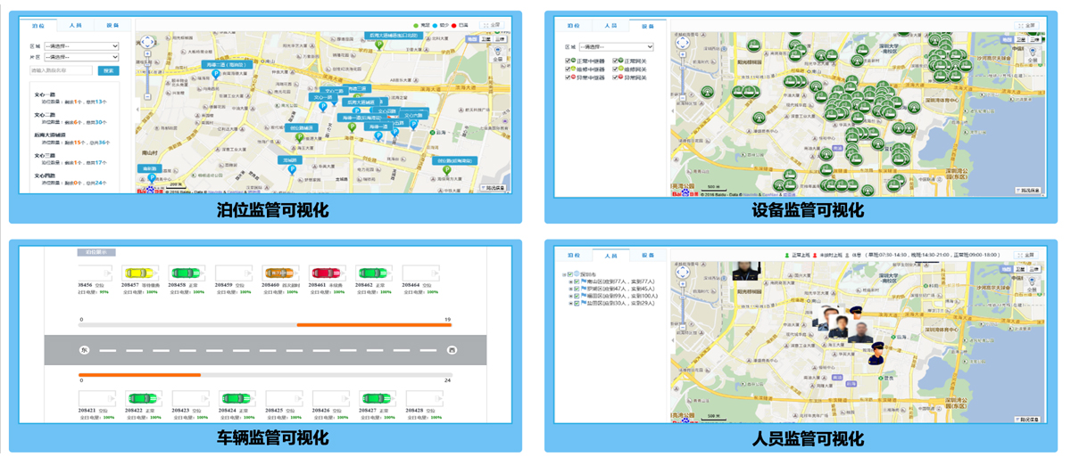 采用“列表+全景地圖” 的形式可視化展現(xiàn)泊位、設備、人員、車輛信息,方便管理人員進行全面精確的運營、監(jiān)管。